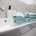 A magán fürdőszoba felszerelései között szerepel a külön WC és zuhanyzó.